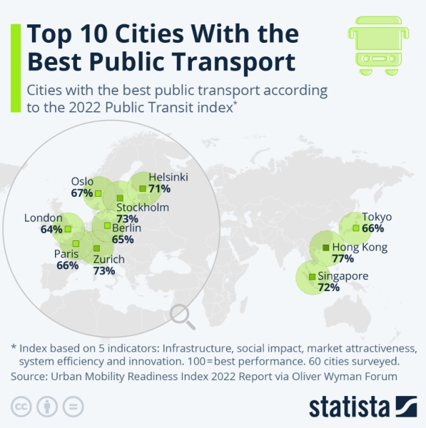 ТОП-10 городов мира с лучшей системой общественного транспорта: