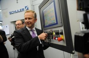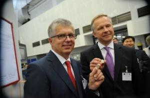 Центральный банк поместил в социальной сети снимок, на котором президент Банка Латвии Илмар Римшевич запускает оборудование, а затем снимок уже готовых латвийских евромонет.