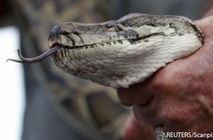 Поначалу женщина не хотела снимать с шеи питона, однако после переговоров все же отдала животное, которое позже было доставлено в Рижский зоопарк.