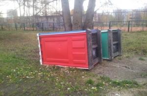 В роще рижского микрорайона Плявниеки ветер опрокинул биотуалеты.