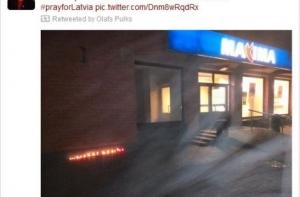 Люди приносят свечи и цветы в память о погибших в результате трагедии в Золитуде к магазинам Maxima и в других городах Латвии. Так, один из пользователей социальной сети Twitter опубликовал фото из Валки, где у магазина Maxima появилось несколько свечей.