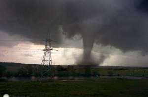 Очевидцы выкладывают в социальных сетях фотографии смерча, который, предположительно, образовался в Риге во время грозы.