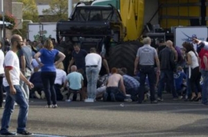 На видео, выложенных в различных социальных сетях, видно как монстр-трак (автомобиль с очень большими колесами, высокой подвеской и мощным двигателем, прим. ред.) проезжает по нескольким старым автомобилям, потом отклоняется от маршрута и врезается в толпу зрителей.