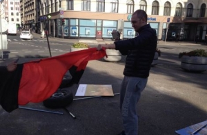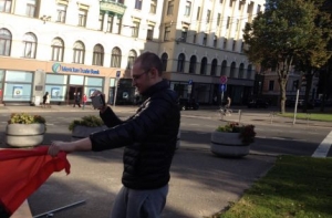 Ранее в интернете было размещено снятое самими правонарушителями видео о том, как мужчина в маске переворачивает два плаката экспозиции и срывает флаг «Правого сектора», который потом разрывает ножом.