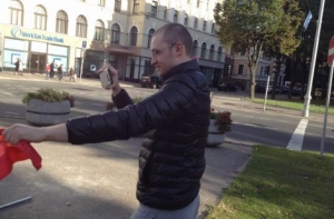 В распоряжении Госполиции оказались фотографии с одним из хулиганов, которые вчера разрушили экспозицию выставки «Люди Майдана», около здания правительства.