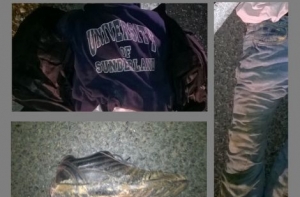 Мужчина был одет в черную куртку, синий свитер с капюшоном, светло синие джинсы, черную спортивную обувь.
