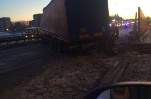«На съезде, с Южного Моста на улицу Краста, по направлению в центр грузовую фуру занесло, и она «застряла» перегородив все три полосы, сломав релинги моста. Спуск возможен только по направлению к улице Маскавас, через трамвайные рельсы, и затем прямо, на Краста. На месте работают дорожная полиция, пожарная бригада и эвокуатор для тяжёлой техники, но на асфальте множество обломков, и едва ли дорогу откроют ближайшие часа два», - рассказал радио Baltkom очевидец Антон Абитаев.
