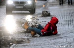 Вчера в Риге, поскользнувшись на скользком тротуаре, сотрясение мозга получил мэр Ливаны Андрис Вайводс.