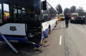 В 10.20 на Юрмалас гатве автомашина Alfa Romeo столкнулась с автобусом Rīgas satiksme. Как сообщил пресс-секретарь муниципального транспортного предприятия Виктор Закис, автобус шел в Пиньки, а автомашина оказалась на встречной полосе.