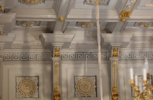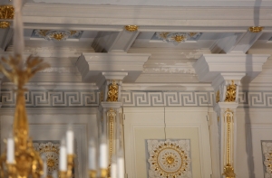 Белый зал также больше всего пострадал во время пожара в Рижском замке в 2013 году.
