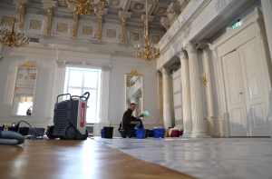 «К сожалению, потолок Белого зала частично залит водой. Насколько велики повреждения, выяснится сегодня утром», - сказал он.