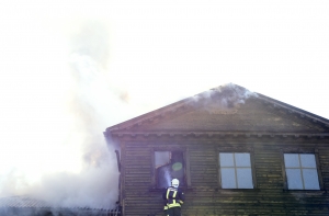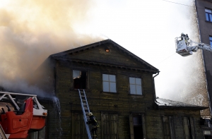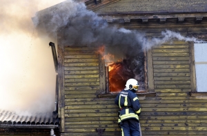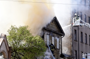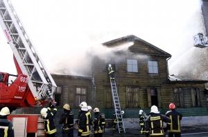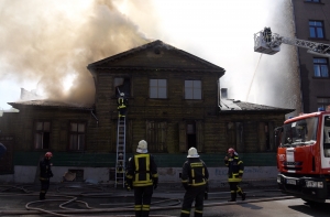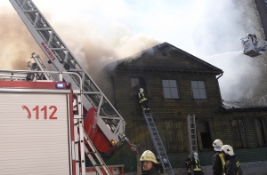 Вызов на ул. Лачплеша был получен в 14.19. Прибыв на место происшествия, пожарные увидели, что деревянный дом горит открытым пламенем. Объявлен пожар повышенной опасности.