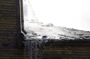 Тушение пожара осложнялось тем, что окна дома закрыты стружечными плитами, которые пожарным приходится выламывать, и дует сильный ветер, поэтому существовала опасность, что огонь перекинется на другие здания. Дом, в котором начался пожар, уже много лет стоит заброшенным.