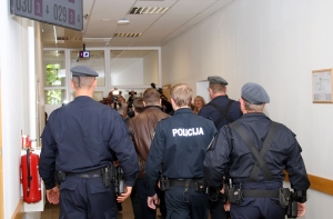 Администраторы были доставлены в суд под конвоем сотрудников батальона спецназначения.