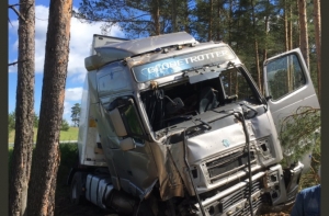 Пользователь Twitter опубликовал в соцсети фотографии, где видно как после столкновения с лосем огромная фура вылетела с дороги в лесополосу. ДТП произошло перед железнодорожным путепроводом у Гаркалне. Снимок опубликован с коротким комментарием «Лось…». В комментариях автор поста указал, что водитель в аварии не пострадал.