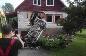 За рулем автомобиля находился мужчина 1977 года рождения. Возле магазина на улице Даугавас он врезался в припаркованную машину и уехал. После этого он врезался в частный дом на улице Диваяс.