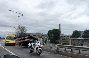 Из-за ДТП движение на мосту осложнено. На месте происшествия работает Государственная полиция и Служба неотложной медицинской помощи.