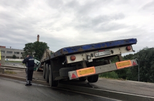 Avarējot kravas auto nobrauc no Dienvidu tilta Pārdaugavas pusē #Rīga #Latvija. foto no @saunanens pic.twitter.com/dWdZ3kA11U