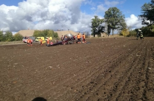 По свидетельствам очевидцев, вертолет упал на вспаханное поле примерно в 10-20 метрах от дороги. Его корпус после падения сильно покорежен.