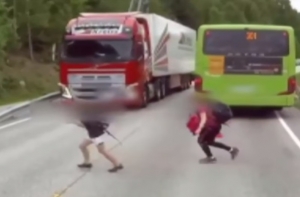 Школьники в Норвегии буквально чудом избежали гибели под колесами фуры. Несколько детей, возвращавшихся домой после занятий, выскочили из автобуса и стали перебегать дорогу, не заметив мчавшегося по встречной полосе грузовика, который оказался из Латвии.