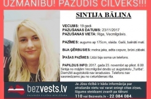 19-летняя рижанка Синтия Балиня, жительница микрорайона Вецмилгравис пропала 23 ноября 2017 года, сообщает поисковая организация Bezvests.lv.
