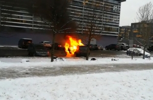 Сегодня, 19 января, на стоянке Олимпийского спортивного центра открытым пламенем горел автомобиль BMW, сообщили очевидцы порталу Delfi.lv.