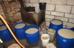 Полицейские провели обыск места жительства мужчины и обнаружили, что в одной из хозяйственных построек ведется незаконное производство алкоголя. Кроме 600 литров браги, в ходе обыска было конфисковано 94 литра самогона, который предполагалось реализовать на так называемых точках.