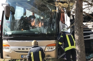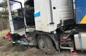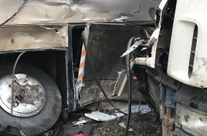 Известно, что в момент аварии водитель автобуса был не пристегнут. Шофер грузового автомобиля был доставлен в больницу.