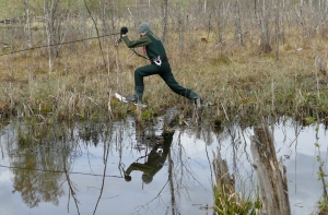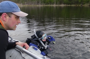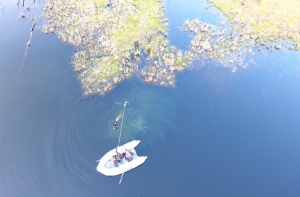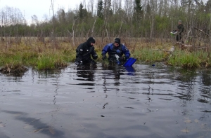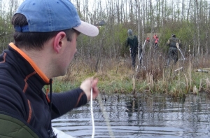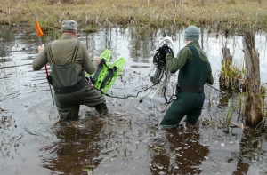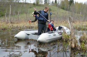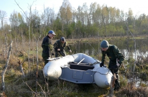 Две группы добровольцев параллельно обследовали береговую линию и заболоченные участки местности. Первая с аппаратурой для подводных исследований обследовала дно (Андрей Чернявский, Антон Шишко, Валдис Скулниньш), а другая (Арт и Гунтис) изучила болотистые участки при помощи болотоходов. Доброволец Андрей Леонов страховал болотоходцев из лодки.