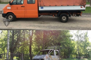 Спустя некоторое время после случившегося неподалеку от места преступления был обнаружен горящий открытым пламенем грузовой микроавтобус. Вызов в Государственную пожарно-спасательную службу об этом ЧП был получен в 8:53.