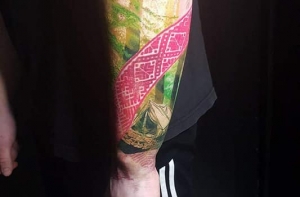 **Особые приметы:** яркие татуировки - на левой руке - на локтевой стороне до запястья (сова, церковь, пояс Лиелварде, лес), а также тоннели в мочках обоих ушей.