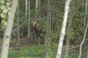 Прибывшие на место полицейские сразу увидели лося. Любопытное лесное животное испугалось и забежало в кусты, но никуда уходить не собиралось.
