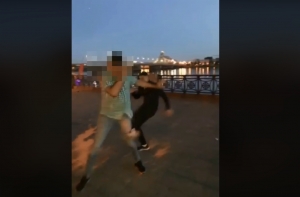 Рижская муниципальная полиция просит опознать человека на видео, который 10 июня напал на мужчину на набережной 11 ноября, сообщает riga.lv.