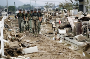 Наводнение вызвано мощными ливнями, обрушившимися на центральные и юго-западные районы Японии на минувшей неделе. Это взывало разливы рек и сходы селей.