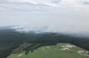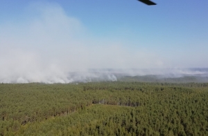 В тушении пожара участвуют также вертолеты Национальных вооруженных сил Латвии и литовской армии.