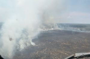 По словам Яункикиса, несмотря на привлечение значительного количества людей и единиц техники, пожар в лесном болоте не удалось ограничить.