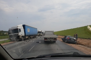 Kravas un vieglā auto avārija uz Rīgas HES (Rīgas apvedceļš #A5) #Dole #Salaspils #Latvija. Satiksme bloķēta.
