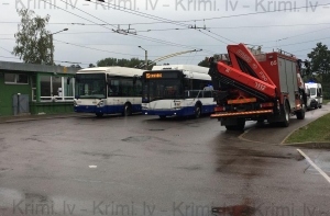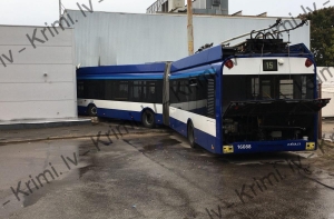 Как сообщает krimi.lv, два троллейбуса не поделили дорогу и столкнулись. После чего один из троллейбусов врезался в стену, так как, возможно, водителей перепутал педали.