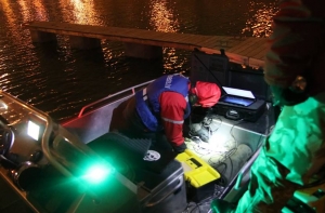 Волонтеры с аппаратурой для поисков под водой - акустической камерой и сонаром - сканировали дно, проверяя метр за метром Адмиралтейский канал в Таллинне.