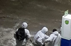 Госполиция разыскивает трех человек, которые, одевшись в белые комбинезоны, около 4 часов утра обокрали автомат автозаправочной станции (АЗС) на Тейке в Риге, по адресу Бривибас, 386.