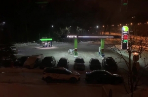 Как рассказали в полиции, минувшей ночью в полицию по телефону позвонили несколько жителей, сообщив о том, что на АЗС на Тейке звучит сигнализация, а трое мужчин в белых комбинезонах взломали автомат, предназначенный для расчетов за горючее.