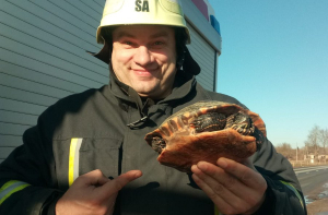 В Салдусе в минувшие выходные спасатели помогли черепахе выбраться с поверхности замерзшей реки, сообщили в Государственной пожарно-спасательной службе.