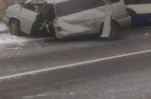 По словам Юревицы, ДТП случилось около поворота на Волери. Произошло фронтальное столкновение автобуса и легкового автомобиля.