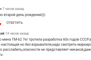Между тем, пользователи Youtube.com, комментируя находку, указали, что Юрий пережил «второй день рождения», а знающие указали, что скорее всего это учебные мины или просто без детонаторов.