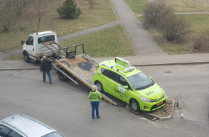Сообщество Facebook «DTP_Latvia» публикует видео с необычным ДТП. На видео видно, как машина такси наехала на так называемый островок безопасности и не может с него съехать.