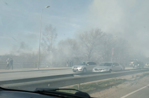 Между тем, как сообщил корреспондент Mixnews, крупное возгорание прошлогодней травы возникло также на выезде из Риги в районе Юглы.