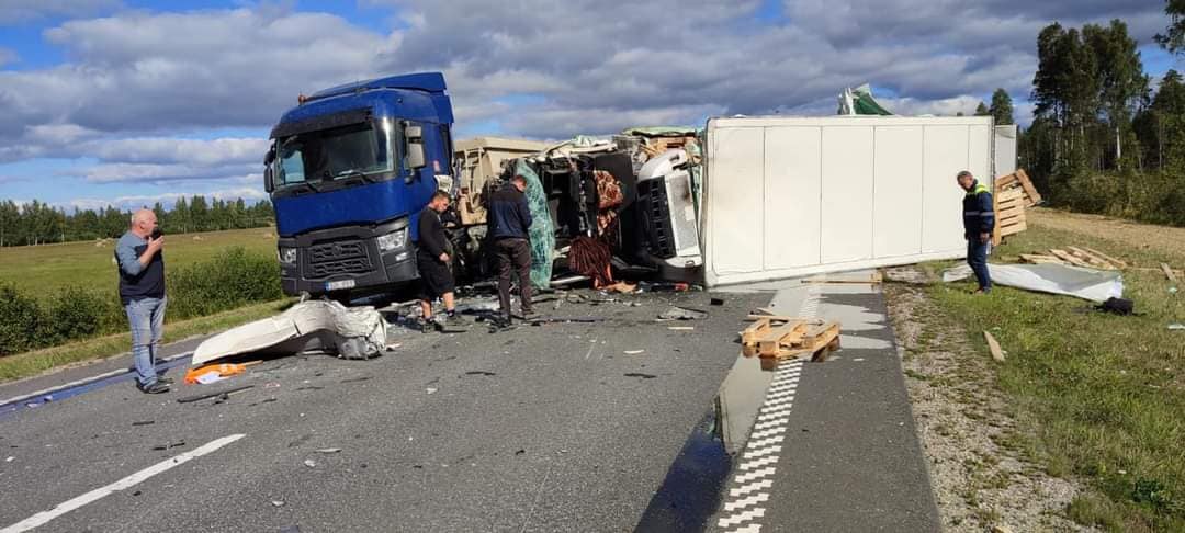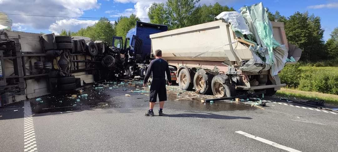 Сегодня, 8 сентября, в 20 км от города Айнажи по дороге на Пярну (Эстония) произошло ДТП, участниками которого стали фура и самосвал.