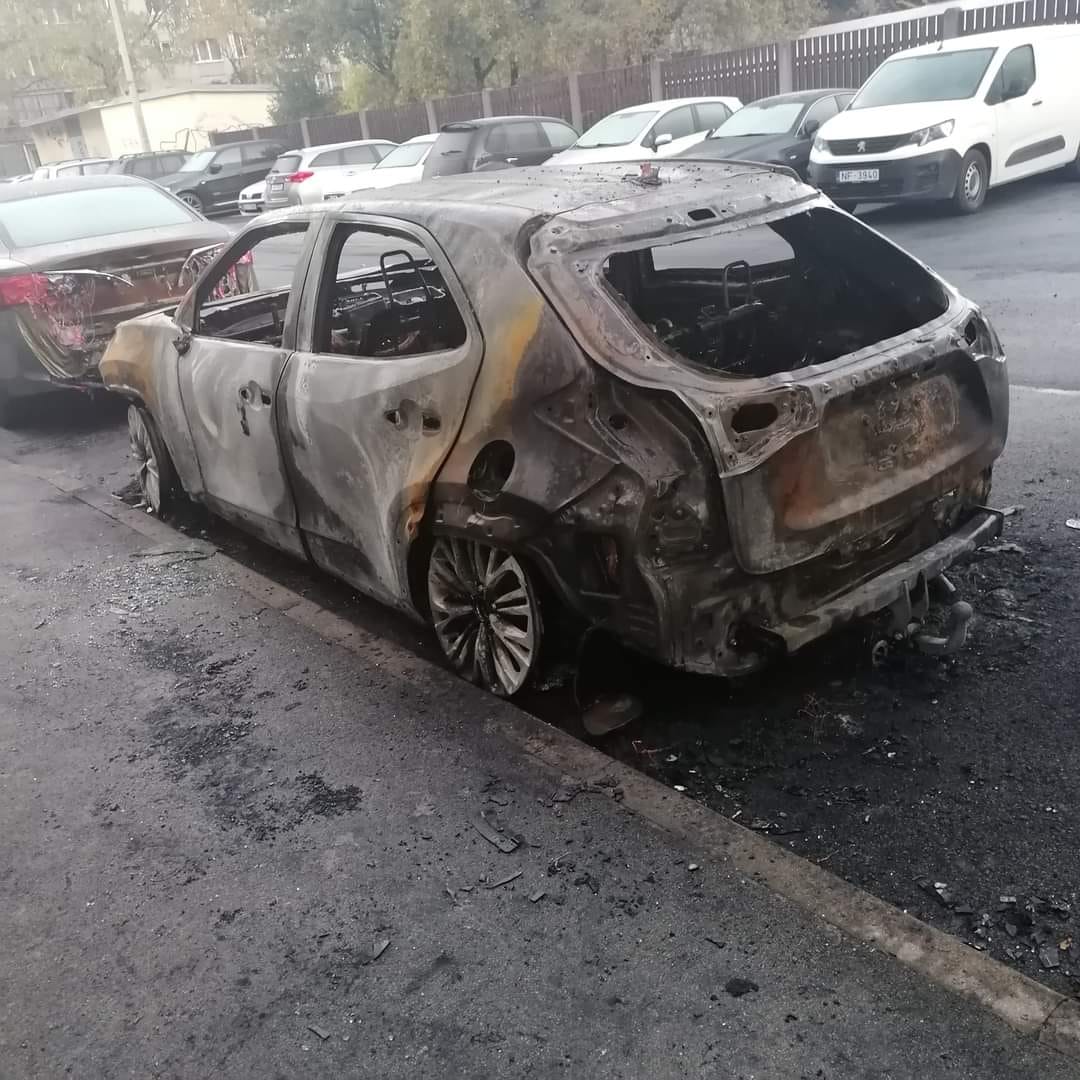В Иманте сгорели три автомобиля. Пользовательница социальной сети Facebook поделилась фотографиями с места происшествия.
