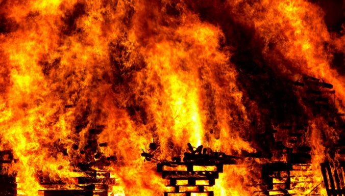 В Озолниеках крупный пожар: огонь бушует в автосервисе - горят шины и краски