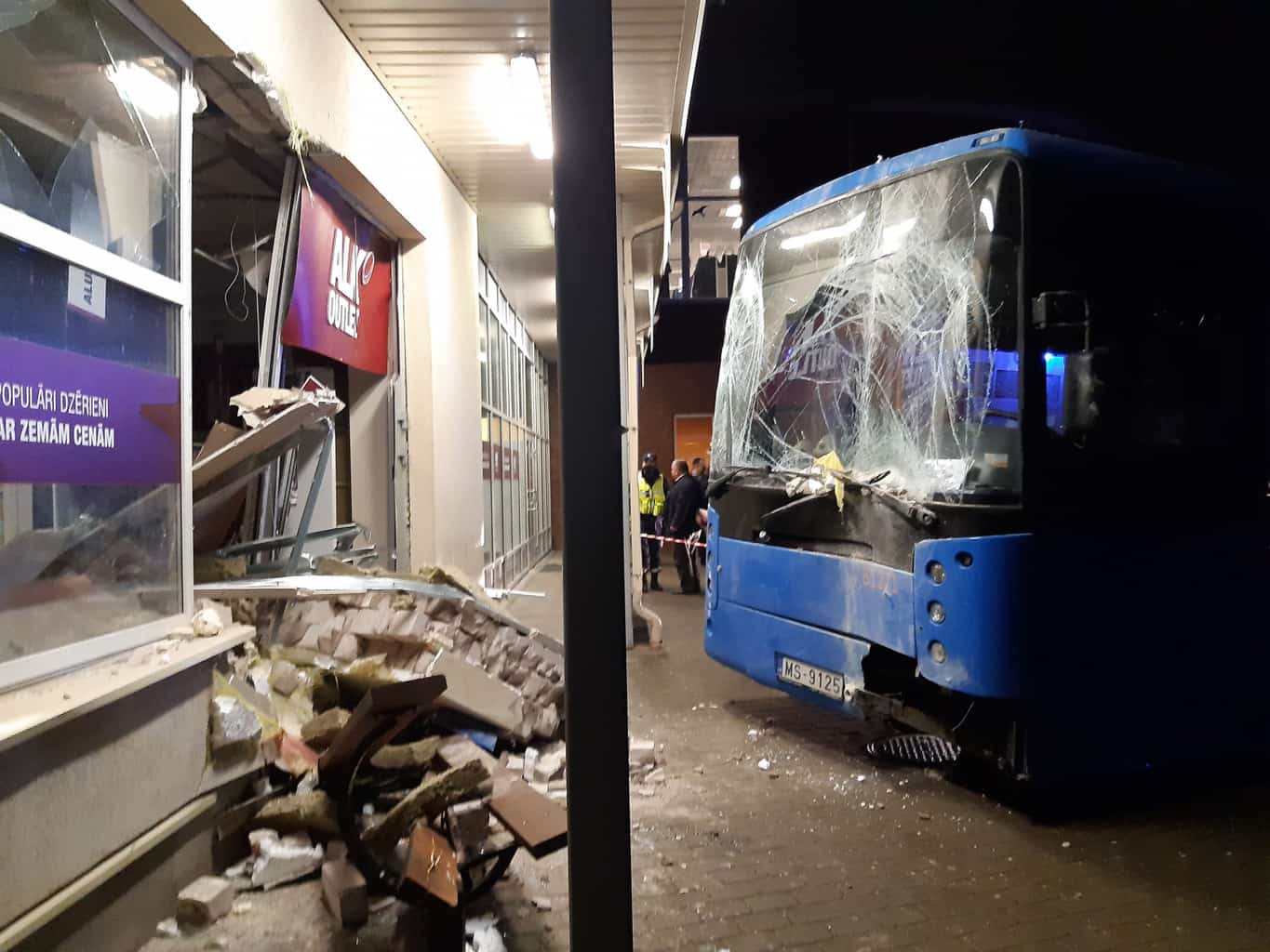 Автобус врезался в стену магазина в Балви (ФОТО и ВИДЕО)